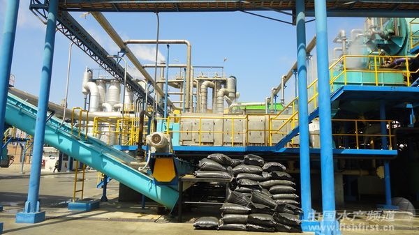 2、秘魯魚粉生產加工自動化程度高。從船上原料魚卸貨進廠到生產加工魚粉都是自動化完成,全程不落地。加工工藝一般為蒸煮、壓榨、烘干、冷卻、粉碎、包裝,工藝圖會展示在墻上。