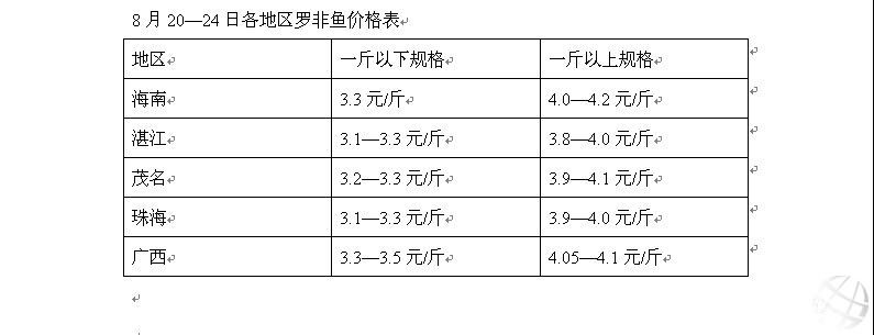 8月20--24日羅非魚周報