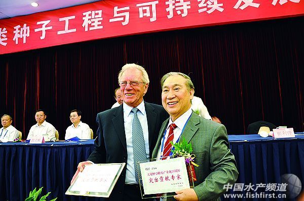 農業(yè)部漁業(yè)局授予雷霽霖院士和Howell博士大菱鲆引種及產業(yè)化20周年突出貢獻專家