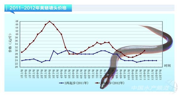 中國(guó)水產(chǎn)頻道據(jù)《水產(chǎn)前沿》雜志消息,11月上旬,廣東菜鰻塘頭價(jià)價(jià)格為12萬(wàn)元/噸,5p規(guī)格活鰻24萬(wàn)元/噸;而對(duì)日出口活鰻價(jià)5p規(guī)格依然保持在3550日元/公斤。