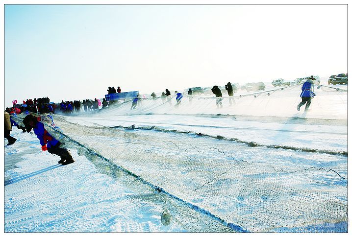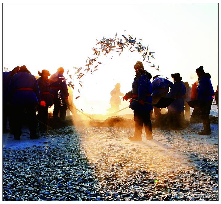 呼倫湖冬季捕漁的產量要占到全年產量的80%以上,被譽為“中國的愛斯基摩人”。 呼倫貝爾的呼倫湖,又名達賚湖,意思是“海一樣的湖”,面積2339平方公里,有兩個香港那么大,是中國第五大淡水湖,北方最大的湖。有人說冬天的呼倫湖是中國最大的一塊冰,這個比喻很形象。位于祖國東北與俄羅俄相鄰的達賚湖,從每年的十一月開始冰凍,一直到翌年的五月才開始融化,冰的厚度將近一米,近兩千多平方公里的一塊大冰實在夠大,這片中國最大的冰面上又演繹了怎樣的冬之故事呢? 不要以為冰凍三尺的呼倫湖就平靜了,在這塊巨冰之下卻有著不盡的寶藏。呼倫湖已經有近一個世紀的漁業生產史,冰凍的湖下藏有鯉魚、鯽魚、油餐鰷、蒙古紅鲌、鯰魚、秀麗白蝦等30余種魚類。 為了保護資源,呼倫湖夏天是禁止捕魚的,每年自4月開始直到11月,呼倫湖都是處在“封湖休漁”期,冬季只有冰層達到45公分左右,并且經過驗冰人員檢測合格后,才可以開始冬捕。呼倫湖冬季捕漁的產量要占到全年產量的80%以上,被譽為“中國的愛斯基摩人”的捕魚者們,延用已經有著近百年歷史的傳統的冰下捕魚的方式進行冰上捕漁,近年,冰上捕漁這一原始的捕撈方式已成為呼倫貝爾冬季旅游的一個看點。 每年冰捕開始時有隆重的祭典儀式,現在已經演繹為內蒙古滿洲里的冰捕節了。只見戴著狗皮帽子、束腰棉襖、腳上蹬著防水鞋的漁工先是跪拜祭天祭地,然后就帶著冰上捕漁的“家伙什”坐著大膠輪車浩浩蕩蕩地在中國最大的冰面上捕撈冰下的寶藏了。經過下網——給網——走桿——鉆冰幾道捕撈準備,最為攝人心魄的一幕便是破冰捕魚,只見長龍式的大網由拖拉機牽引著從冰口徐徐拉出的時候,一條條還在冬眠的魚在睡夢中便被驚醒,在大網里撲楞著、跳躍著,引起人們一陣陣的驚呼。 遺憾的是我參加的冰捕見到的魚并不是很大,與我想象的壯觀場面有些差距,這讓我有些沮喪,后來一打聽才知道這網魚是呼倫湖特有的小白魚,它是長不太大的。呼倫湖的小白魚也叫“白條”,最大的就可以長到二、三兩,如果長到最大的時間不打撈就死了,用小白魚做的罐頭是達萊湖的特產。但讓我激動的是漁工們用“抄撈子”將魚撈至冰上,再用板鍬將魚揚灑在冰面上以防凍成坨的場景。此時在金色的陽光下,銀魚漫天飛舞著像是跳躍著的金魚,陽光魚影映著漁工們的笑臉,那種感覺就是農民享受著豐收后的喜悅。捕漁節這天只是呼倫湖冬季剛剛拉開冰上捕漁的大幕。漁工告訴我:那一網打上來幾十噸大魚的時候太多了,以后有機會你再來吧,一定讓你大飽眼福的! 圖片說明: 冰捕節開幕式 冰捕祭典儀式 臨上冰前喝上一大碗酒 捕撈隊伍出發了 起網,激動人心的時刻到了 開鑿