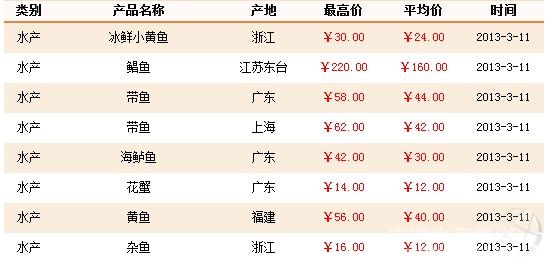 3月11日上海農(nóng)產(chǎn)品中心批發(fā)市場水產(chǎn)品價格