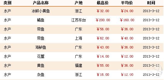 摘要: 3月12日上海農產品中心批發市場水產品價格。