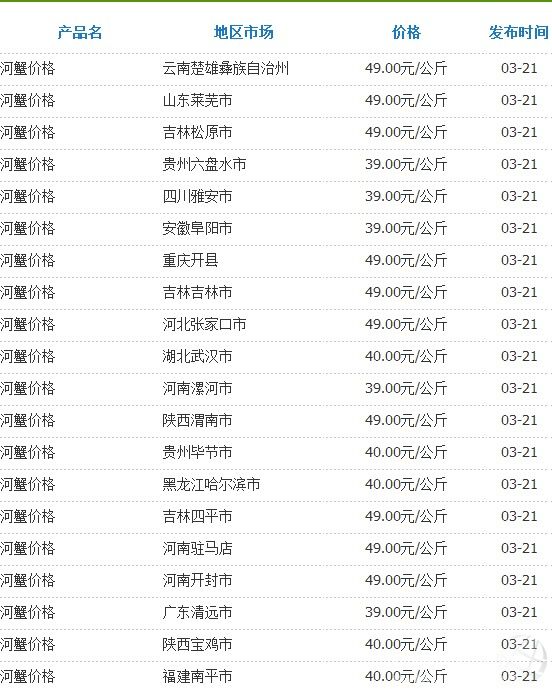 中國水產頻道獨家報道,3月21日國內部分地區河蟹價格統計如下: