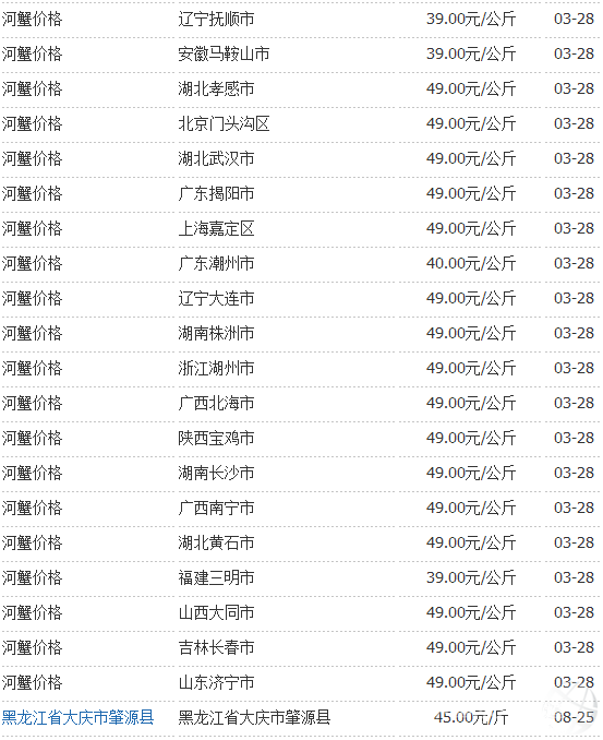 3月28日國內部分地區河蟹價格統計