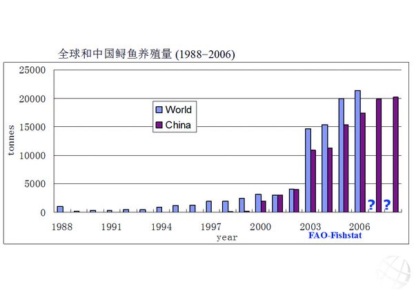 全球和中國(guó)鱘魚養(yǎng)殖量(1988-2006)