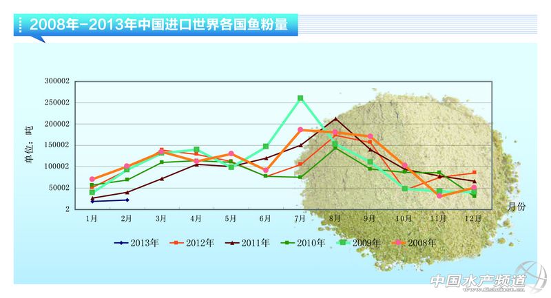 中國水產(chǎn)網(wǎng)站獨(dú)家報(bào)道,2013年秘魯中北部第一捕季的配額為205萬噸,即將于5月17日開捕。從近年同期的數(shù)據(jù)看,本捕季的配額數(shù)量處于最低的水平,而開捕時(shí)間也最遲。秘魯新捕季的魚粉最快要7月底才能到達(dá)國內(nèi)。根據(jù)秘魯?shù)某隹诟聰?shù)據(jù)(截止到5月13日),4月份秘魯出口魚粉為31465噸。從去年12月至今年4月,秘魯已出口魚粉近18萬噸,而上捕季秘魯生產(chǎn)的魚粉總量為19萬噸左右,秘魯國內(nèi)未出口庫存非常有限,5月和6月國內(nèi)的秘魯魚粉到貨隨之會(huì)大幅減少。因此,在8月份新捕季秘魯魚粉集中到貨之前,國內(nèi)的優(yōu)質(zhì)魚粉供應(yīng)偏緊的局面仍會(huì)持續(xù)。