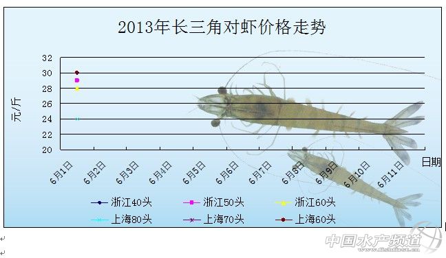 中國水產頻道獨家報道,據海大集團華南蝦料部提供資料顯示,6月1日長三角對蝦價格情況如圖所示(點擊可見大圖):