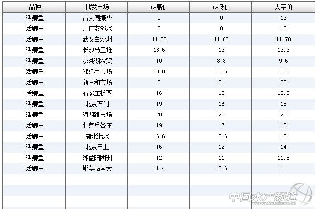 (中國水產頻道水產價格信息共享Q群:245296163,歡迎提供各種水產品一線價格信息!)
