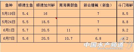 中國水產頻道獨家報道,據海大集團華南魚料部提供資料顯示6月1-7日部分地區特種魚價格行情如下: