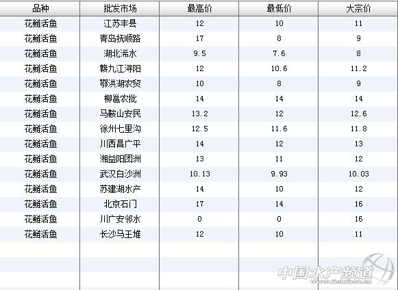 (中國水產頻道水產價格信息共享Q群:245296163,歡迎提供各種水產品一線價格信息!)