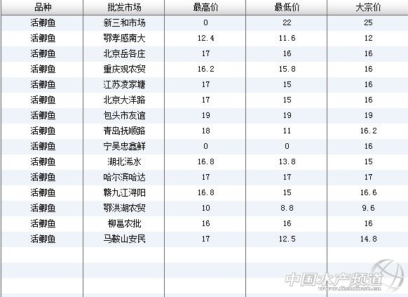 (中國水產頻道水產價格信息共享Q群:245296163,歡迎提供各種水產品一線價格信息!)