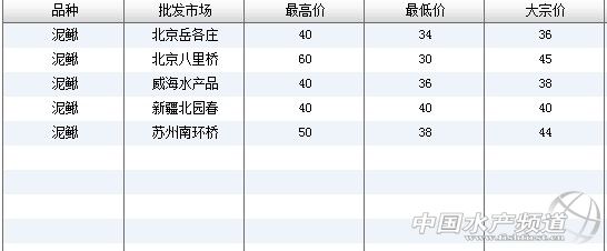 中國水產頻道獨家報道,6月26日全國主要批發市場泥鰍價格行情如下: