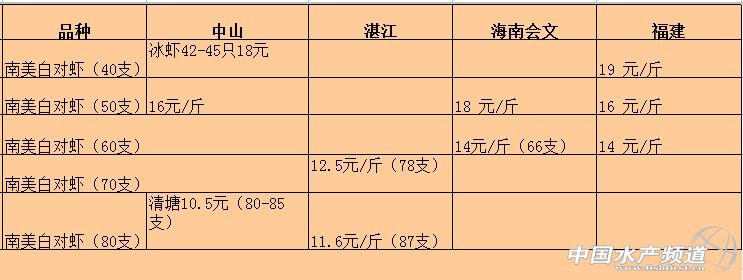 摘要: 7月10日各地南美白對蝦價格行情如下