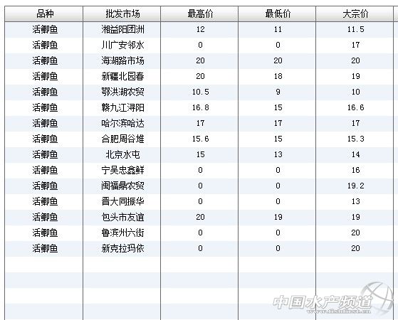 (中國水產頻道水產價格信息共享Q群:245296163,歡迎提供各種水產品一線價格信息!)