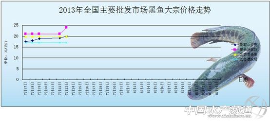 中國水產頻道獨家報道,7月23日全國主要批發市場黑魚價格行情如下: