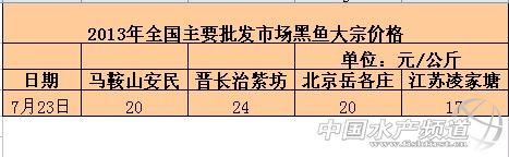 2013年7月23日全國主要批發市場黑魚價格行情