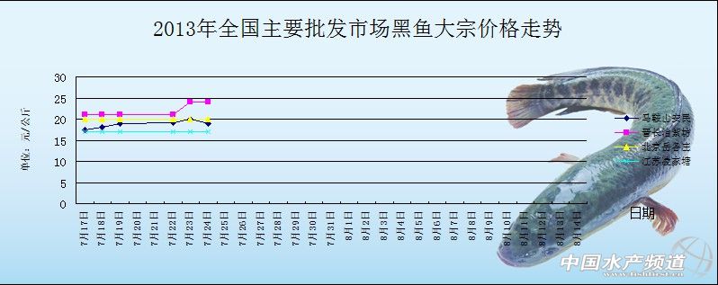 中國水產頻道獨家報道,7月24日全國主要批發市場黑魚價格行情如下: