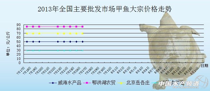 中國水產(chǎn)頻道獨(dú)家報(bào)道,7月26日全國主要批發(fā)市場(chǎng)甲魚價(jià)格行情如下: