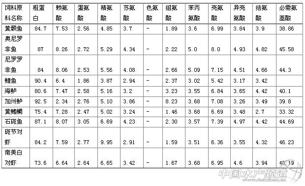 文/天津通威飼料有限公司 肖偉平博士 中國水產頻道獨家報道,魚蝦生長主要通過分解利用飼料的蛋白質從而合成自身體內的蛋白質,而生物體的運動和物質合成所需要的能量主要由飼料能量物質和一部份蛋白質提供。魚類利用飼料中的蛋白質就是利用飼料適量的氨基酸,飼料不同種類的氨基酸與魚體氨基酸組成和需求越接近,魚類利用飼料氨基酸的效率就越高,也越有利于魚體的生長,因此,探討飼料氨基酸的合理組成即氨基酸平衡度對于飼料配制和原料選用有很重要的意義。 不同蛋白質飼料原料的必需氨基酸組成 飼料氨基酸組成主要與蛋白質原料關系最密切,最常用的蛋白質原料主要有魚粉、豆粕、棉粕、菜粕、花生粕、DDGS、玉米蛋白粉、大豆濃縮蛋白、蝦殼粉、蠶蛹等,在進行魚類飼料配制時,通過這些蛋白質飼料原料的適當配比,達到飼料氨基酸組成的適度平衡和飼料的最佳性價比,最終有利于魚體的生長。 魚體氨基酸分必需氨基酸和非必需氨基酸,必需氨基酸是魚體不能自身合成或合成不能滿足自身需要的氨基酸,在進行飼料配制時,必需氨基酸的組成是影響魚體生長最主要的氨基酸,也是評定飼料氨基酸平衡主要的依據。魚類飼料的主要蛋白質原料的必需氨基酸組成如下表所示(表1)。 表1 主要蛋白質飼料的必需氨基酸組成 此表中未考慮氨基酸的消化率和非必需氨基酸的組成。從上表可以看出,不同蛋白質原料的必需氨基酸組成差異較大,魚粉的必需氨基酸組成最平衡,必需氨基酸含量比例較高;植物蛋白源中,豆粕的氨基酸組成較為平衡,花生粕的含硫氨基酸較低,精氨酸含量較高;菜粕的含硫氨基酸較好;棉粕的精氨酸含量較高;血粉或血球蛋白的賴氨酸含量較高;玉米蛋白的含硫氨基酸含量較高。通過以上原料的合理搭配,可以尋求較好的氨基酸平衡,從而達到魚類最佳生長的需求。 不同魚類肌肉氨基酸的組成 探討飼料氨基酸的最佳平衡度,主要以魚類肌肉氨基酸組成模式為參照對象,比較不同飼料原料或者飼料與魚蝦類肌肉必需氨基酸的相似度。不同魚類肌肉氨基酸組成不同,對飼料氨基酸的需求也存在差異,以下為中國常見養殖魚類品種的肌肉氨基酸組成(表2): 表2 幾種不同養殖魚類肌肉的氨基酸組成比較(%) 從表2得知,不同魚蝦種類必需氨基酸的含量不同,通過必需氨基酸指數可以評估不同魚蝦類肌肉必需氨基酸的差異,從而評價魚蝦類對飼料相應必需氨基酸的需求量。 飼料氨基酸的平衡性對魚蝦類生長的影響 魚蝦類利用飼料蛋白質,主要是利用飼料的氨基酸從而合成自身的氨基酸,因此飼料氨基酸與魚體自身氨基酸組成有密切的關系,飼料可消化氨基酸組成與魚體氨基酸組成越平衡,飼料氨基酸的利用率越高,也越有利于魚體的生長,多余的不平衡氨基酸被用于能量代謝或排除體外,造成飼料氨基酸的浪廢,而缺少的必需氨基酸降低了其他氨基酸的利用效率,也就是氨基酸的水桶效應。 對于飼料氨基酸的平衡性對魚體生長的影響,許多水產營養科研工作者開展了不同的試驗研究,證實飼料氨基酸的平衡性對魚體生長有顯著的影響。1988年日本水產飼料科學家村井武四等用酪蛋白和明膠為蛋白源按不同比例配制成蛋白質含量為31.7%的飼料飼喂均重2.1g的鯉魚,鯉魚對酪蛋白和明膠的消化率接近100%,結果發現,當酪蛋白和明膠比例為30:5時,鯉魚的生長速度最快,當精氨酸含量不足,其他氨基酸含量足夠時,鯉魚生長表現較差,而5%的明膠改善了飼料精氨酸不足的現狀,顯著促進了魚體的生長;精氨酸含量過量(酪蛋白和明膠比例為10:25或5:30)而其他氨基酸含量不足時,魚體生長表現更差,而且容易感染細菌病害,從而證實氨基酸的平衡性對魚體生長的重要性。1999年葉元土等在草魚飼料中使用多種飼料原料的合理配比或者在飼料中添加晶體氨基酸,使飼料的氨基酸組成更平衡,養殖結果發現添加結晶氨基酸組的草魚增重率是相應不添加結晶氨基酸組草魚增重率的2.384倍,而使用多種原料組合達到的氨基酸平衡組草魚增重率更大,說明飼料氨基酸平衡確實有利于魚類的生長,也證明了飼料中添加結晶氨基酸有利于魚蝦類的生長。 為了更好的達到飼料氨基酸平衡,多數魚蝦營養工作者在飼料中補充結晶氨基酸,證實也有利于魚蝦類的生長。2002年劉永堅等在草魚飼料中補包膜賴氨酸,顯著促進了草魚的生長,但補充結晶氨基酸促生長效果不明顯;在對蝦飼料中補充晶體氨酸對南美白對蝦的生長影響不顯著,但補充包膜賴氨酸則有明顯的促生長效果(朱選等,2008);陳丙愛等(2008)設置高低魚粉組養殖鯉魚,低魚粉組補充晶體氨基酸和包膜氨基酸,結果發現補充包膜氨基酸后,養殖效果與高魚粉組無明顯差異,但低魚粉組和補充晶體氨基酸組的生長顯著低于其他兩組,說明在飼料中補充氨基酸可以使用飼料氨基酸的平衡效果更好,促進了魚蝦類對飼料氨基酸的利用,但由于晶體氨基酸在水中的流失率很高,而且進入魚蝦體內后很快被排出體外,導致補充晶體氨基酸的生長效果不明顯,而沒有達到氨基酸平衡性的實際作用。 因此,在考慮飼料氨基酸平衡性的時候,氨基酸的消化率和實際利用效率是一個重要因素,只有當魚體實際利用的氨基酸平衡性更好,生長效果才會更好。 如何評價飼料氨基酸的平衡性 4.1 必需氨基酸比例法 必需氨基酸指數法是比較簡潔運用方便的評價方