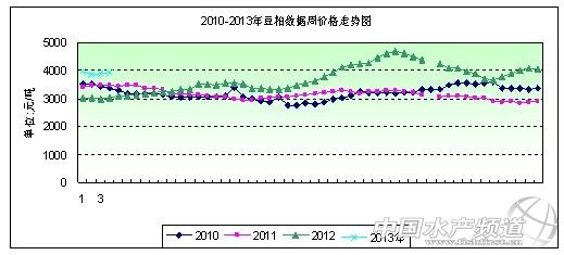 2013年第4周(1月18日-1月25日),美豆受假期較多影響,漲幅較國(guó)內(nèi)明顯弱勢(shì),本周國(guó)內(nèi)豆粕市場(chǎng)呈仍以上漲為主。但隨著終端備貨進(jìn)入尾聲及期貨市場(chǎng)帶動(dòng)下目前處于有價(jià)無(wú)市的狀態(tài)。預(yù)計(jì)短期內(nèi)豆粕價(jià)格仍比較堅(jiān)挺,但豆粕持續(xù)上漲能量不足。本周國(guó)內(nèi)各地工廠43%蛋白豆粕價(jià)格整體運(yùn)行在3865-4180元/噸之間,整周均價(jià)呈略漲態(tài)勢(shì)。 第4周國(guó)內(nèi)豆粕現(xiàn)貨市場(chǎng)一周情況:周一,局部上漲;周二,局部上漲;周三,局部上漲;周四,漲跌互現(xiàn);周五,局部下跌。 第4周(CBOT) 外盤(pán)行情:周一,休市;周二,收盤(pán)上漲;周三,收盤(pán)下跌 ;周四,收盤(pán)下跌。 第4周大商所行情:周一,收盤(pán)上漲;周二,收盤(pán)上漲;周三,收盤(pán)上漲;周四,收盤(pán)下跌;周五,收盤(pán)下跌。 本周主要地區(qū)價(jià)格變化(單位:元/噸)