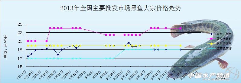 中國(guó)水產(chǎn)頻道獨(dú)家報(bào)道, 8月27日全國(guó)主要批發(fā)市場(chǎng)黑魚(yú)價(jià)格行情如下: