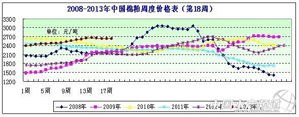 圖表:2013年5月1周(4月26日-5月3日,總第18周)中國主要地區棉粕價格統計(元/噸))