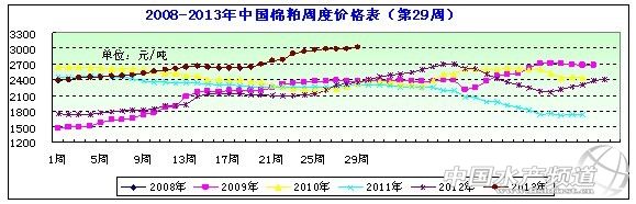 圖表:2013年7月3周(7月12日-7月19日,總第29周)中國主要地區棉粕價格統計(元/噸)