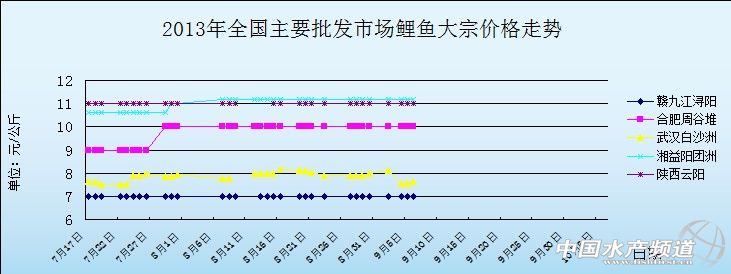 中國水產頻道獨家報道,9月6日全國主要批發市場鯉魚價格行情如下: