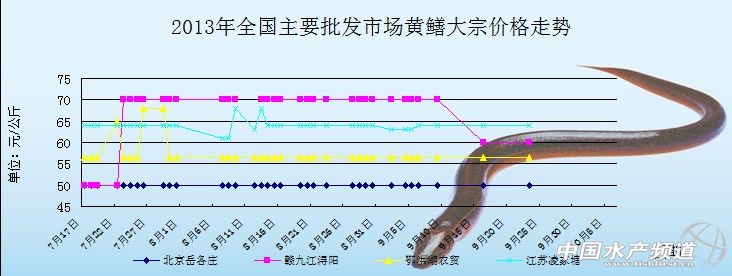 中國水產頻道獨家報道, 9月27日全國主要批發市場黃鱔價格行情如下: