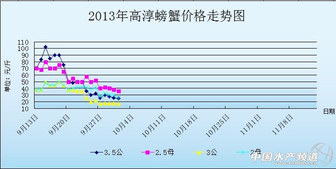 中國水產(chǎn)頻道獨家報道,據(jù)網(wǎng)友提供消息,10月2日江蘇高淳河蟹價格行情如下:
