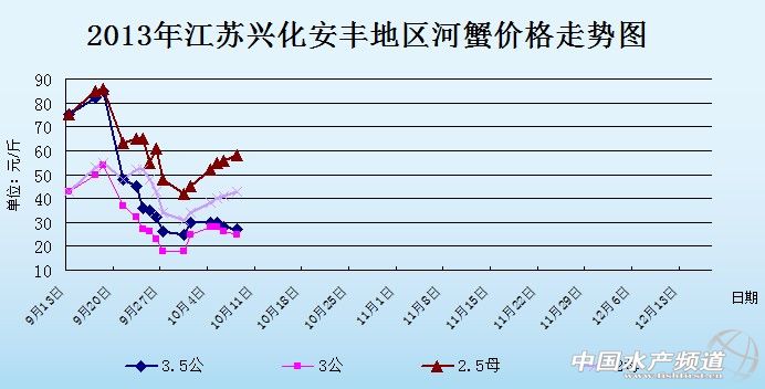 中國水產頻道獨家報道,據網友提供消息,10月9日江蘇興化安豐河蟹價格行情如下: