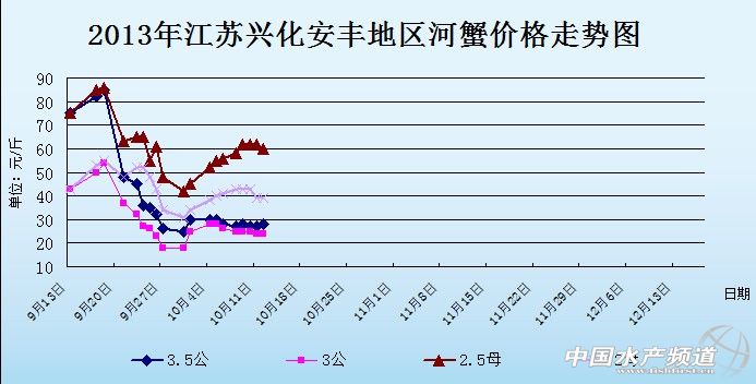 中國水產頻道獨家報道,據網友提供消息,10月12日江蘇興化安豐河蟹價格行情如下: