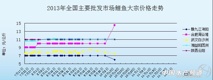 中國水產頻道獨家報道,10月12日全國主要批發市場鯉魚價格行情如下: