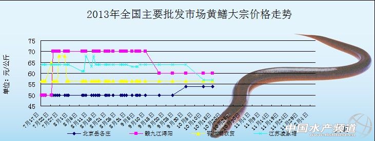 中國水產頻道獨家報道, 10月17日全國主要批發市場黃鱔價格行情如下: