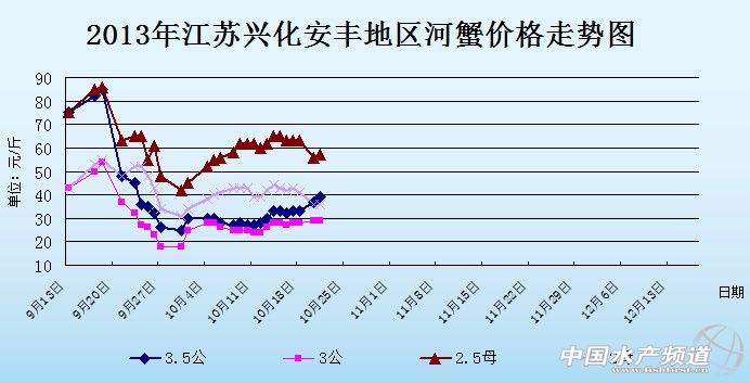 中國水產(chǎn)頻道獨(dú)家報(bào)道,據(jù)網(wǎng)友提供消息,10月21日江蘇興化安豐河蟹價(jià)格行情如下: