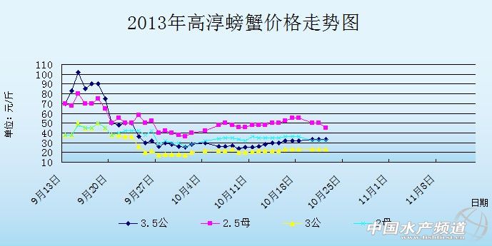 中國水產頻道獨家報道,據網友提供消息,10月22日江蘇高淳河蟹價格行情如下: