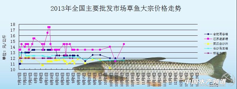 中國水產(chǎn)頻道獨(dú)家報道,10月22日全國主要批發(fā)市場草魚蝦價格行情如下: