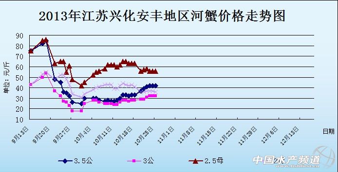 中國(guó)水產(chǎn)頻道獨(dú)家報(bào)道,據(jù)網(wǎng)友提供消息,10月25日江蘇興化安豐河蟹價(jià)格行情如下: