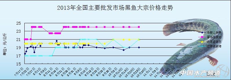 中國水產頻道獨家報道, 10月25日全國主要批發市場黑魚價格行情如下: