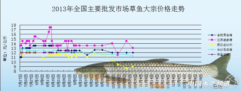 中國水產頻道報道,2013年11月7日草魚批發價格行情匯總如下: