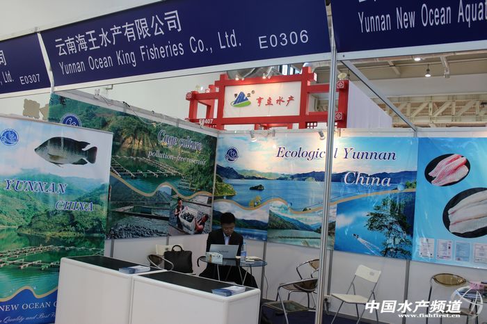圖文報道:第18屆中國國際漁業博覽會 文/ 圖 中國水產頻道 唐東東 中國水產頻道獨家報道,第18屆大連國際漁業博覽會上,云南New Ocean Group展臺噴繪上的網箱養殖羅非魚頗為搶眼,公司負責外銷的Eva Yu說不少美國、加拿大的展商因此被吸引過來咨詢。據Eva Yu介紹,New Ocean Group是云南出口量最大的羅非魚出口企業,因所加工的羅非魚來自水庫養殖,品質較好,因此公司主要走中高端市場。“不過歐盟給的價格太低,現在還是走加拿大和美國市場。”Eva Yu表示。 【關鍵字】:玉博會 云南羅非魚 網箱養殖 中國水產頻道(m.fuqitext.com)獨家報道,轉載請說明出處,違者追究法律責任, 謝謝合作。 |