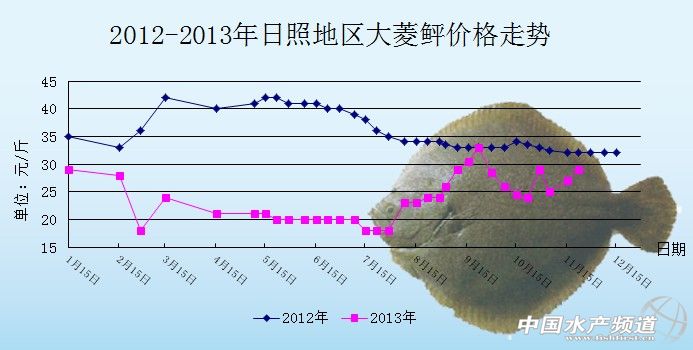 中國水產頻道獨家報道,據青島七好生物科技有限公司提供資料顯示,2013年11月19日,山東日照地區大菱鲆塘頭報價為29元/斤,較上上周上漲4元/斤。 大菱鲆 日期 地區 規格 價格 單位 11月19日 山東日照 550-750克 29 元/斤 11月4日 山東日照 550-750克 27.5 元/斤 10月28日 山東日照 550-750克 29 元/斤 10月21日 山東日照 550-750克 24 元/斤 10月14日 山東日照 550-750克 24.5 元/斤 10月8日 山東日照 550-750克 26 元/斤 9月30日 山東日照 550-750克 28.5 元/斤 9月23日 山東日照 550-750克 32 元/斤 9月16日 山東日照 550-750克 30.5 元/斤 9月9日 山東日照 550-750克 29 元/斤 9月4日 山東海陽 550-750克 27 元/斤 9月2日 山東日照 550-750克 26 元/斤 8月29日 山東海陽 550-750克 24 元/斤 8月26日 山東日照 550-750克 24 元/斤 8月19日 山東日照 550-750克 24 元/斤 8月12日 山東日照 550-750克 23 元/斤 (中國水產頻道水產價格信息共享Q群:245296163,歡迎提供各種水產品一線價格信息!) | ||||||||||||||||||||||||||||||||||||||||||||||||||||||||||||||||||||||||||||||||||||||||||
