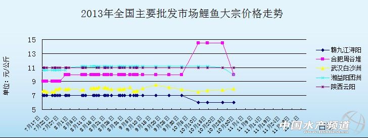 中國水產頻道報道,2013年11月29日河北秦皇島海陽農副產品批發市場鯉魚價格行情如下: