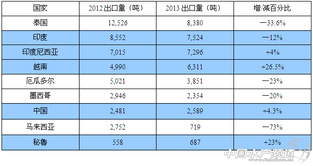 譯/大頭魚 中國水產頻道獨家報道,2013年,盡管泰國的對蝦產量下降了30%左右,但是它的對蝦輸美的能力依然強盛,在所有的對蝦出口國中排名第一,達到8380噸。排在其后的是印度,盡管印度國的產量有所下滑,但是對美出口依然達到了7524噸,已經連續兩年排名第二。 馬來西亞因為受EMS的影響,在所有國家中下降最明顯,從2752噸減少到719噸,降幅達73%。 另外兩個不容小視的對蝦輸美國是洪都拉斯和秘魯,雖然和以上國家不是同一等量級,秘魯在2013年輸美對蝦增長了23%,從原來的558噸增長到687噸,而洪都拉斯對蝦輸美數達到1,142噸。 【關鍵詞】:對蝦出口 泰國蝦 越南 中國水產頻道(m.fuqitext.com)獨家報道,轉載請說明出處,違者追究法律責任, 謝謝合作。 |