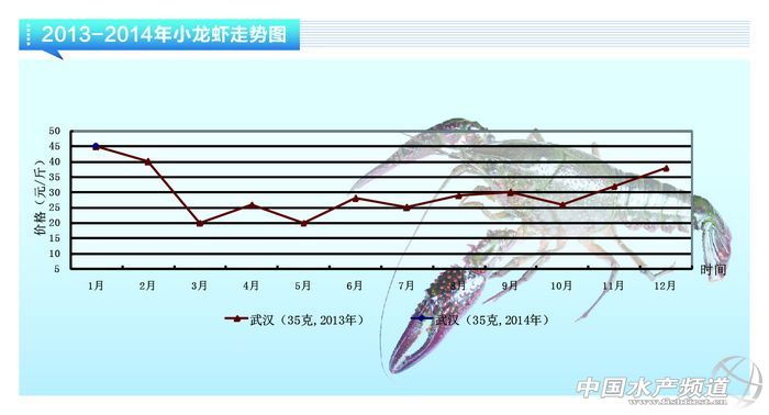 小龍蝦:走量持平 價格明顯上漲 現在正值寒冬季節,氣溫很低,小龍蝦的捕撈有難度,所以小龍蝦的市場走量還是很少,2014年1月份的小龍蝦的市場走量與去年末相比基本持平。 根據武漢白沙洲農副產品大市場近期提供的信息,小龍蝦的價格為:15-34克的30元/斤,35-39克的45元/斤,40克以上的55元/斤。小龍蝦的市場走量雖然與去年年末基本持平,平均為2000斤/天,但是市場銷售價格上升較多,平均每個等級的銷售價格比上月上浮5元/斤。(湖北梅川生態農業科技發展有限公司 耿明順) |