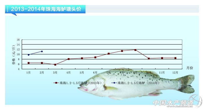 中國水產頻道獨家報道,2月中旬,珠海海鱸1.3斤以上規(guī)格冰鮮魚價為11.2元/斤,較上月同期有1.4元/斤的漲幅;鮮活魚價相近。據(jù)海鱸流通商反映,目前珠海地區(qū)存塘魚主要為0.6-0.9斤規(guī)格的小魚,存量大概為500-600口塘,預計5月份之后才陸續(xù)上市。因此,該流通商估計在5月份之前,海鱸價格上漲的可能性極大。 年后,海鱸投苗接近尾聲,當?shù)仫暳辖涗N商預估還有2000-3000萬尾的投苗量,主要是年前部分池塘賣完魚,清塘后即將投放苗種。保守估計,現(xiàn)在海鱸投苗量有3億多尾。(唐東東) |