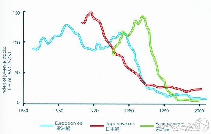 臺灣連續3年歉收的日本鰻線,在2013-2014年產季卻又突然豐收,估計可達7噸左右。雖然日本科學家已找到日本鰻產卵場,并已成功人工孵化,但尚未具商業價值,日本鰻的柳葉鰻時期的生態至今仍是個謎,鰻線資源增減的原因連專家也不能肯定。 文/圖 臺灣《養魚世界》 鄭石勤 中國水產頻道獨家報道,淡水鰻為降海洄游性魚類,在分類學上屬于鰻鱺目(Anguilliformes),鰻鱺科(Anguillidae),鰻鱺屬(Anguilla)。臺灣的淡水鰻有5個鰻魚品種,分別是日本鰻(A. japonica)、鱸鰻(A. marmorata)、呂宋鰻(A. luzonensis)、太平洋雙色鰻,以及近年才發現的數量較少的偶來種——西里伯斯鰻(A. celebesensis)。[注1] 在臺灣產的5種淡水鰻之中,最重要的莫過于日本鰻,日本鰻的生命從受精卵開始,經過柳葉鰻、玻璃鰻、鰻線、黃鰻和銀鰻等六個階段。 1.卵期:位于深海產卵地。 2.柳葉鰻:在大洋隨洋流長距離漂游,此時身體扁平透明,薄如柳葉便于隨波逐流。 3.玻璃鰻:在接近沿岸水域時,身體轉變成流線型,減少阻力,以脫離強勁洋流。 4.鰻線:進入河口水域時,開始出現黑色素。這形成養殖業鰻苗的捕捉來源。 5.黃鰻:在河川的成長期間,魚腹部呈現黃色。 6.銀鰻:在成熟時,魚身轉變成類似深海魚的銀白色,同時眼睛變大,胸鰭加寬,以適應洄游至深海產卵。 最早,科學家并不知道日本鰻是在海里產卵,只知道每年冬季有大量的玻璃鰻來到河川入海口,然后進入河川里長成黃鰻。 過去臺灣養殖所需鰻線不足時,會自港澳地區引進,而幼鰻、鰻苗則來自日本及韓國。鰻苗依規格大小可區分為三類:鰻線(Glass eel)為每公斤5000尾以上體型者;鰻苗(Eel fry)為每公斤500-5000尾規格;幼鰻(Young eel)每公斤11-500尾。 日本鰻產卵場遠在三千公里外 第一個揭開鰻魚(歐洲鰻)生活史神秘面紗的是丹麥的約翰尼史密特(Johannes Schmidt),他發現丹麥境內的歐洲鰻是從美國佛羅里達東方的藻海(Sagosso Sea)誕生后,漂流到丹麥的,這個發現也引發日本人自1930年代起尋找日本鰻產卵場的熱潮。 日本科學家1968年在日本南方海域捕獲體長60mm的柳葉鰻,1975年在臺灣東方海域捕獲52尾50mm左右的柳葉鰻,1986年在菲律賓東方捕獲21尾40mm柳葉鰻,1991年在馬里亞納島西側采捕到1000多尾10mm的前期柳葉鰻,這年所采到的前期柳葉鰻體型非常小,顯示日本鰻產卵場就在馬里亞納海溝西側。 日本鰻產卵場的尋找看似簡單,其實是在嘗試和錯誤之后,花很長的時間才找到的。日本研究鰻魚的泰斗松井魁博士認為,產卵場應該在臺東部的沖繩海溝附近。東京大學田中昌一教授為了證實,1972年曾在臺灣東部進行柳葉鰻采集調查,結果只找到大型柳葉鰻。臺灣研究鰻魚的權威前水產試驗所鹿港分所所長郭河,也曾判斷日本鰻產卵場是在臺灣西南部琉球海溝附近。 先前各種產卵場的誤判,是因為當時不了解日本鰻的生活史、仔稚魚的成長過程及海流構造所導致,過去甚至還認為鰻魚是在冬季產卵。 直到1980年以后,由于科技的進步,經由鰻魚耳石周輪的研究,才逐漸進一步認識日本鰻的生活史。原來,日本鰻受精卵從孵化到鰻線要經過半年的時間,每年(西歷)12月至1月在臺灣沿海出現的大量鰻線是半年前的夏天出生的,由海上漂流和洋流速度推算,日本鰻的產卵場距離臺灣非常遙遠。 長期研究鰻魚生態的臺灣大學名譽教授曾萬年指出,由耳石日周輪可以推測出鰻魚苗的魚齡、孵化日及生產速率。受精卵孵化后的卵黃囊期有5天,之后才開口攝餌。因此,由觀查到的日周輪數再加5天,就是鰻魚的出生日。 1991年日本東京大學白鳳丸試驗船在馬里亞納島西側海域捕獲一千多尾柳葉鰻。經耳石周輪觀查得知,這批魚苗的出生日都集中在5月的新月當天,或6月新月后1-3天。“很巧合有趣的是,臺灣鰻魚漁汛的高峰期也是在滿月前后。”曾萬年說。 全世界兩萬多種魚類之中,只有鰻鱺目、囊鰓鰻目、海鰱目及北梭魚目等四個目的魚類在早期發育期會經過柳葉魚階段,這四個目的魚類體型差異極大,但是DNA序列證明四個目的血緣關系很近。在分類學上,它們有共同的祖先,學者因此推論淡水鰻的祖先是從深海魚類演化而來。 鰻線捕撈方法 臺灣地區每年的日本鰻鰻苗汛期自西歷10月下旬開始,隔年3月下旬結束,12月到2月是盛產期。四周沿海河口都會出現各個種類的鰻魚苗,但主要的品種以鱸鰻及日本鰻為主。整體而言,日本鰻線以宜蘭縣產量最多。根據曾萬年教授的研究,臺北淡水河口的鰻線捕獲比例是日本鰻多鱸鰻少,日本鰻占81%,鱸鰻17.8%;屏東縣的東港溪則正好相反,日本鰻29.7%,鱸鰻64.9%;花連縣的秀姑巒溪則大多是鱸鰻,占97.1%。 臺灣三條河流捕獲的鰻線種類比例圖(仿自韓玉山) 由于各地氣候不同,直接影響了捕捉鰻苗的方法,西部臺灣海峽沿海大致上可以曾文溪出海口(臺南安南區)為準,區分為海峽南部、北部。海峽北部由于東北季風迎風面的關系,冬季時海浪增大,漁船出海不易,漁民大多是在岸邊或是內海設置定置魚網,每個晚上固定1-2個小時倒一次網尾,收集鰻線;海峽南部由于處于避風面,則是由漁船在船只兩側各加裝凸出之鐵桿,在其上掛上附網尾之漁網于近海處拖行,同樣每隔1-2小時倒一次網尾。 桃園縣新屋鄉沿海漁民利用最小網眼魚網在社子溪口捕撈鰻魚苗,每到鰻苗漁汛季節,溪流出海口布滿大大小小魚網,鰻魚苗透明且細小如發絲,漁民捕撈不分日夜,夜晚在海濱可看到成排頭燈,都是