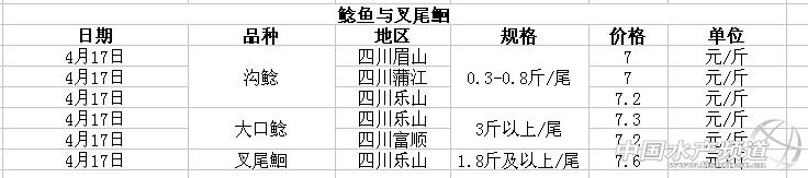 中國水產頻道獨家報道,據海大集團成都海大提供消息,4月17日四川地區鯰魚與叉尾鮰價格行情如下:
