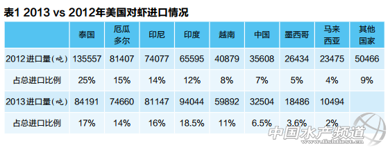 文/圖 中國(guó)水產(chǎn)流通與加工協(xié)會(huì) 崔和 中國(guó)水產(chǎn)頻道獨(dú)家報(bào)道,2013年,我國(guó)水產(chǎn)品進(jìn)出口貿(mào)易保持持續(xù)增長(zhǎng)。全球水產(chǎn)品貿(mào)易量保持穩(wěn)定,增幅僅0.3%,客觀地反映了水產(chǎn)品消費(fèi)的穩(wěn)定現(xiàn)狀,我國(guó)水產(chǎn)品出口量連續(xù)3年呈現(xiàn)平穩(wěn)態(tài)勢(shì),作為水產(chǎn)品出口第一大國(guó)的我國(guó)的出口情況,也證明國(guó)際水產(chǎn)品的市場(chǎng)需求比較穩(wěn)定。出口額方面增幅比較大,特別是我國(guó),出口額首次突破200億美元,但出口額的增長(zhǎng)涉及水產(chǎn)品生產(chǎn)成本、匯率等多種因素影響,不能反映消費(fèi)市場(chǎng)的真實(shí)情況。 2013年,全球水產(chǎn)品貿(mào)易額為1360億美元(上年度年為1292億美元),增幅達(dá)到6.6%,其中對(duì)蝦、三文魚價(jià)格上漲明顯。 今年,從貿(mào)易外部環(huán)境看:全球經(jīng)濟(jì)恢復(fù)緩慢,美、歐、日三大市場(chǎng)遇到的問題不一,美國(guó)推出量化寬松貨幣對(duì)后市的影響有待觀望、歐盟歐債危機(jī)后恢復(fù)活力不足、日本安倍經(jīng)濟(jì)遇到不少問題,我國(guó)經(jīng)濟(jì)增長(zhǎng)放緩,新興經(jīng)濟(jì)體有下滑風(fēng)險(xiǎn)。 可以預(yù)見,今年出口、內(nèi)銷生意都艱難。但整體來講,水產(chǎn)品貿(mào)易全球化程度最高,農(nóng)產(chǎn)品中水產(chǎn)品交易最活躍。 國(guó)際對(duì)蝦生產(chǎn)貿(mào)易情況與特點(diǎn) 從對(duì)蝦生產(chǎn)來看:主要對(duì)蝦生產(chǎn)國(guó)中,多國(guó)蝦產(chǎn)量下降,最大的對(duì)蝦生產(chǎn)國(guó)——我國(guó),對(duì)蝦減產(chǎn)的數(shù)量最大,產(chǎn)量由上一年度的153萬噸下降到133萬噸(其中海水蝦產(chǎn)量77萬噸,淡水蝦產(chǎn)量56萬噸)。 泰國(guó)下降的比率最高,達(dá)到50%,其他對(duì)蝦生產(chǎn)國(guó)墨西哥、馬來西亞都下降,只有印度對(duì)蝦產(chǎn)量增加最大,幾乎翻一番產(chǎn)量超過30萬噸、越南產(chǎn)量也有增長(zhǎng)。 2013年,我國(guó)養(yǎng)殖對(duì)蝦產(chǎn)量下跌幅度超過13%。淡水養(yǎng)殖對(duì)蝦在江蘇、福建、河北成功率較高。其他省份或持平、下降。 從對(duì)蝦貿(mào)易來看:主要進(jìn)口國(guó)(美、日、歐),2013年對(duì)蝦進(jìn)口量下降,進(jìn)口價(jià)格上漲,我國(guó)也從去年扮演了對(duì)蝦進(jìn)口大國(guó)的腳色,我國(guó)去年全年對(duì)蝦價(jià)格一直高位運(yùn)行。 去年最值得關(guān)注的是我國(guó)對(duì)蝦市場(chǎng)的變化,2013年我國(guó)從對(duì)蝦凈出口國(guó)變?yōu)閷?duì)蝦凈進(jìn)口國(guó),周邊國(guó)家都成為我國(guó)對(duì)蝦進(jìn)口的目標(biāo)國(guó)。另外,我國(guó)采購商還從中南美洲的厄瓜多爾、阿根廷也大量采購對(duì)蝦,連伊朗和非洲都進(jìn)入了我國(guó)對(duì)蝦采購商的范圍。進(jìn)口的野生捕撈對(duì)蝦也明顯上漲。 2013年,我國(guó)蝦類出口量連續(xù)兩年下降;主要出口市場(chǎng)中美、日、歐均下降,僅香港增加;出口額達(dá)22.2億美元,同比增幅達(dá)14.5%。 我國(guó)對(duì)蝦進(jìn)口的情況,從海關(guān)數(shù)據(jù)統(tǒng)計(jì)來看,2013年我國(guó)從東盟進(jìn)口對(duì)蝦量1.8萬多噸,同比增加38%。實(shí)際上,我國(guó)進(jìn)口對(duì)蝦遠(yuǎn)不止這個(gè)數(shù)據(jù),據(jù)業(yè)內(nèi)調(diào)查,初步估算為10萬噸以上。2013年我國(guó)從厄瓜多爾直接進(jìn)口對(duì)蝦就超過7000噸,該國(guó)對(duì)蝦協(xié)會(huì)負(fù)責(zé)人告知還有部分通過邊境完成交易,所以我國(guó)進(jìn)口對(duì)蝦的實(shí)際數(shù)量比海關(guān)統(tǒng)計(jì)量要高出幾倍。有人估算,每天邊貿(mào)對(duì)蝦的進(jìn)口量就300多噸。 另外,除大量進(jìn)口養(yǎng)殖對(duì)蝦外,我國(guó)還大量進(jìn)口捕撈蝦,從加拿大、北歐進(jìn)口冷水蝦,去年就超過3.5萬噸。也進(jìn)口野生捕撈蝦,如阿根廷紅蝦、加拿大牡丹蝦、非洲海捕蝦等2萬多噸。 主要對(duì)蝦進(jìn)口國(guó)的變化 美國(guó)仍然是對(duì)蝦進(jìn)口第一大國(guó),對(duì)蝦進(jìn)口市場(chǎng)的巨大吸引力沒有改變,但是連續(xù)幾年對(duì)蝦進(jìn)口呈現(xiàn)下跌的態(tài)勢(shì)。2013年總進(jìn)口量50.8萬噸,比2012下降4.7%,2012年進(jìn)口量比2011下降7.6%。 另外,由于去年對(duì)蝦主產(chǎn)國(guó)受EMS病害的影響,國(guó)際對(duì)蝦的市場(chǎng)格局被打亂,表現(xiàn)在三個(gè)方面: 一是我國(guó)對(duì)蝦市場(chǎng)首次出現(xiàn)供不應(yīng)求的局面,靠進(jìn)口來滿足國(guó)內(nèi)市場(chǎng)的需求; 二是泰國(guó)失去了十多年對(duì)蝦出口第一大國(guó)的地位,該國(guó)對(duì)蝦產(chǎn)業(yè)能否恢復(fù)其領(lǐng)先地位,還有待觀望; 三是新興對(duì)蝦生產(chǎn)國(guó),引領(lǐng)對(duì)蝦出口的主導(dǎo)地位,表現(xiàn)最好的是印度,這個(gè)國(guó)家對(duì)蝦生產(chǎn)還沒有開足馬力,潛力很大,越南在國(guó)際市場(chǎng)也表現(xiàn)得越來越活躍。 從美國(guó)進(jìn)口對(duì)蝦的市場(chǎng)份額來看,2013年前5個(gè)國(guó)家的市場(chǎng)份額發(fā)生了變化,排名依次為:印度、泰國(guó)、印尼、厄瓜多爾、越南,我國(guó)排名第六位。2012年泰國(guó